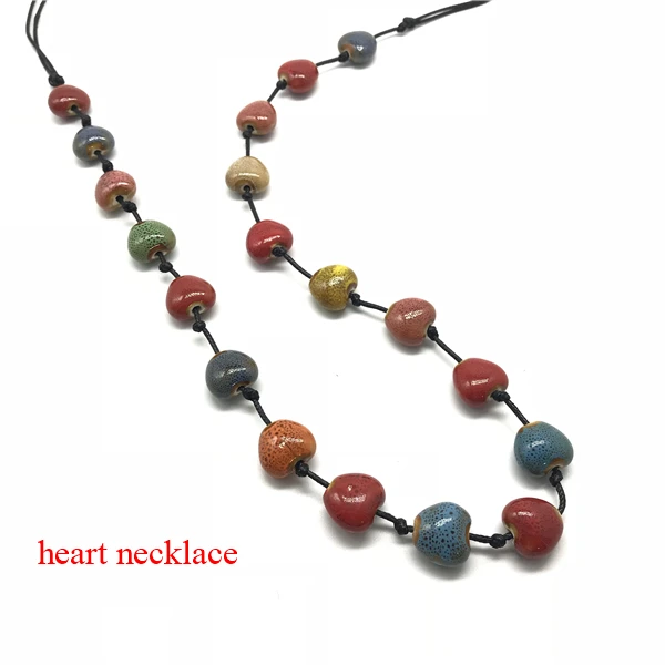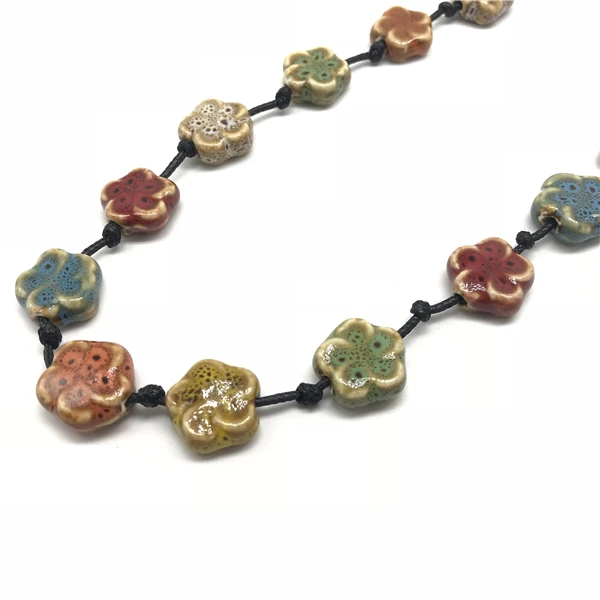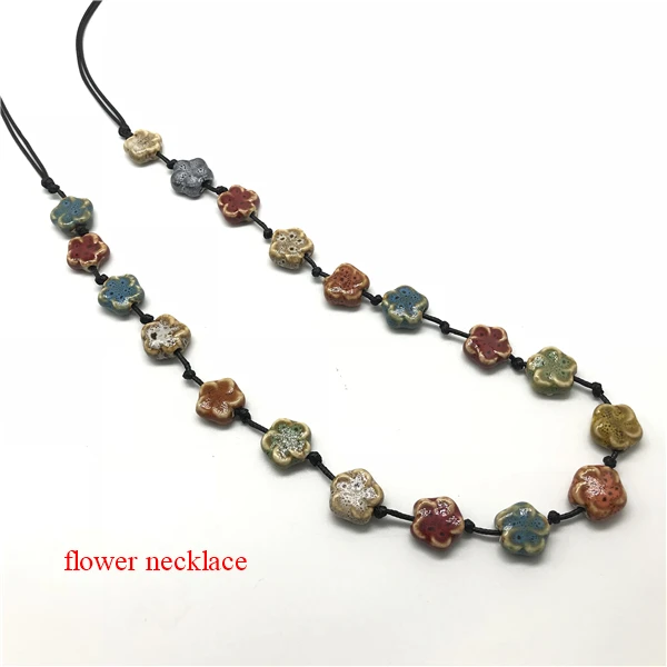 Best Bohemian Adjustable Colorful Ceramic Flower Knotted Long Necklace for Women Heart Statement Necklac