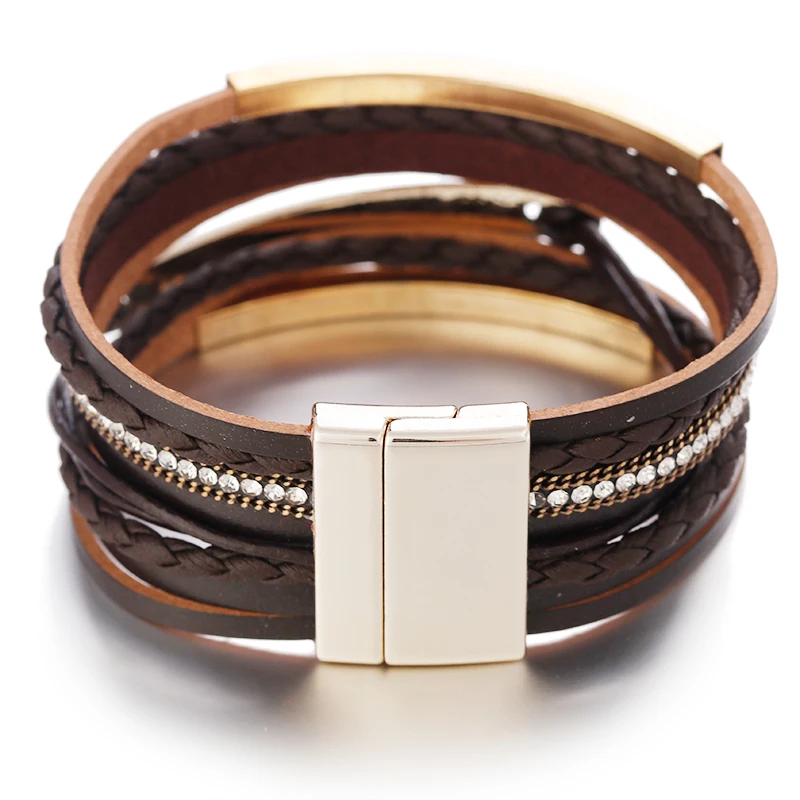 Buy ALLYES Multilayer Leather Bracelet For Women Metal Bar Charm Braided Wide Wrap Bracelets & Bangles