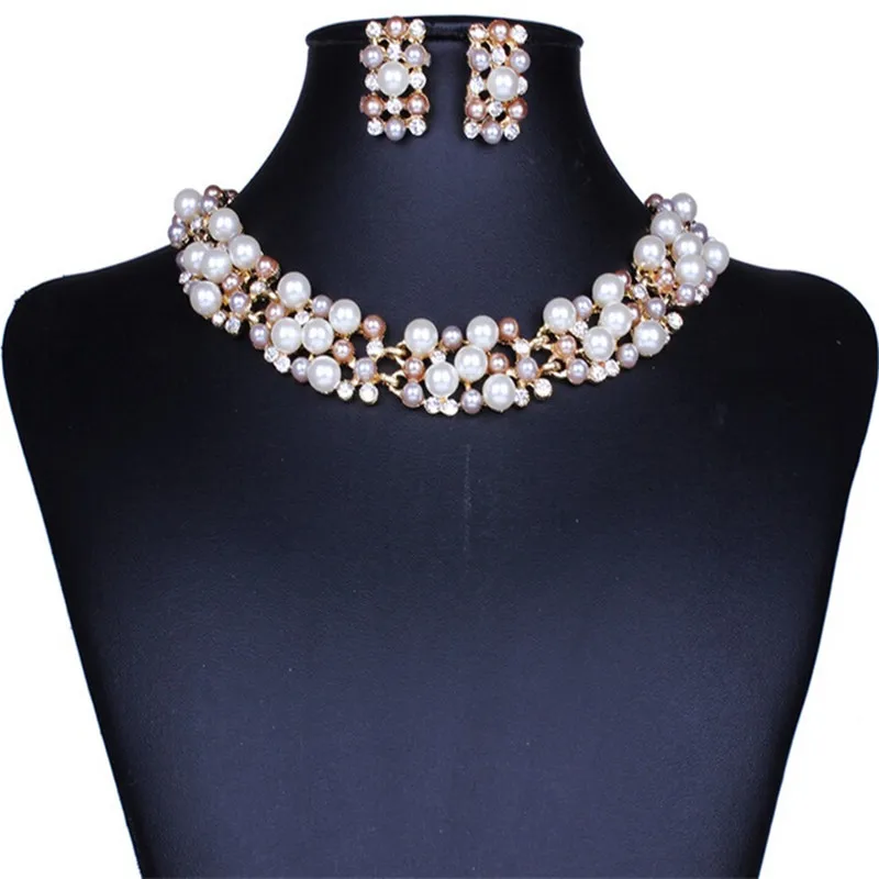 Buy Fashion Simulated Pearl Jewelry Sets Women Crystal Wedding Bridal Flower Gold Silver Chain Pendant