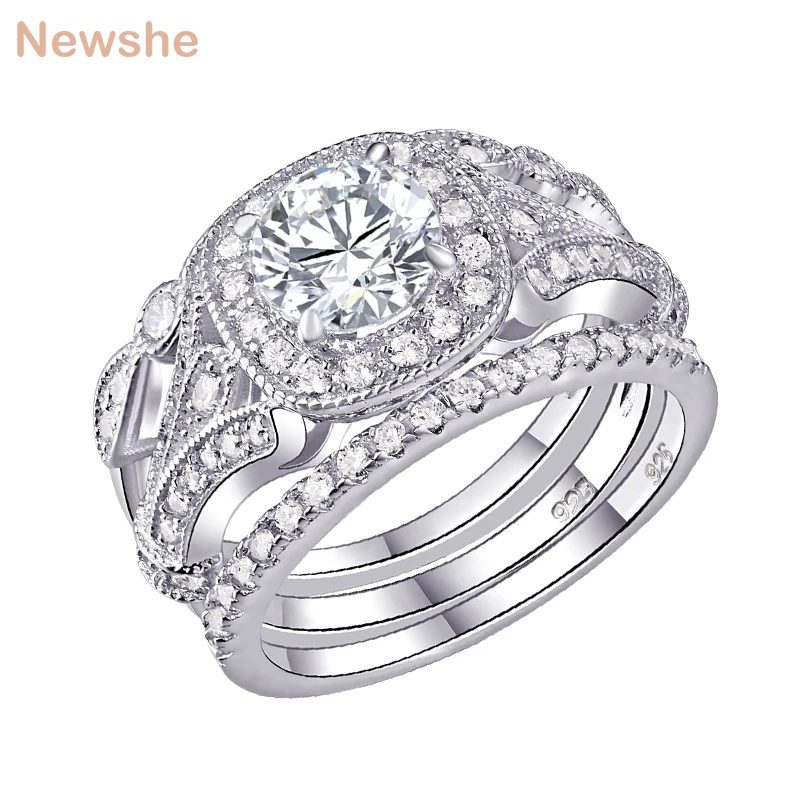 Promo Newshe 3 Pcs Wedding Ring Sets Classic Jewelry 925 Sterling Silver 1Ct Round AAA CZ Engagement Ring