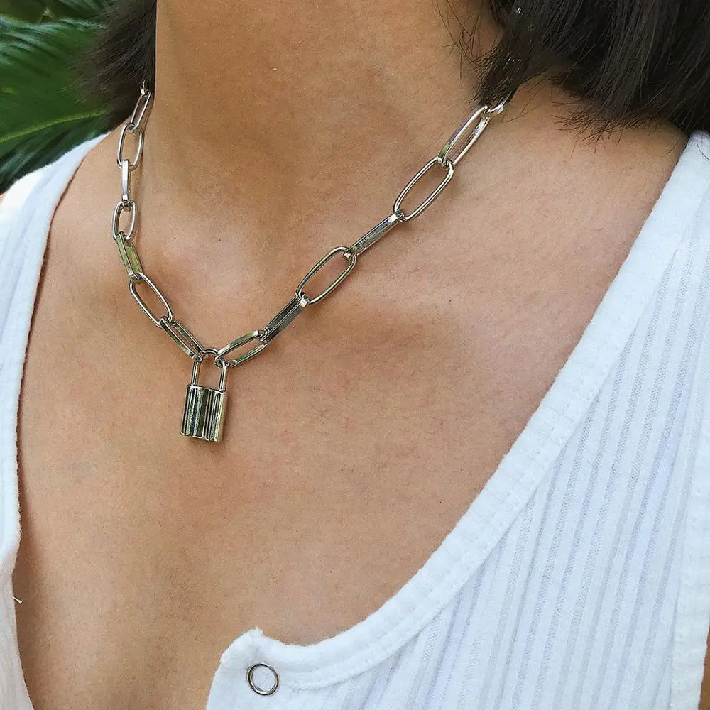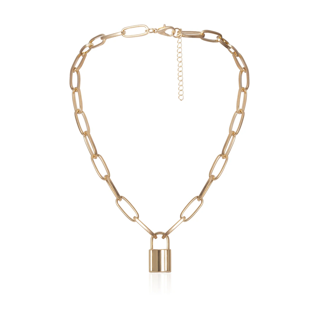 Best Punk Love Lock Pendant Choker Necklace Collar Statement Clavicle Gold Padlock Long Chain Necklace S