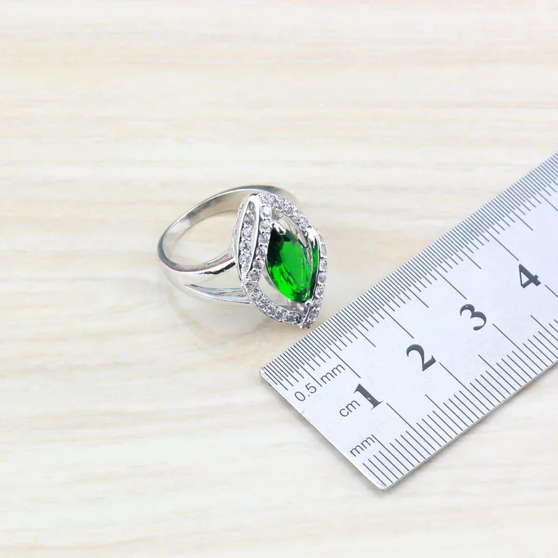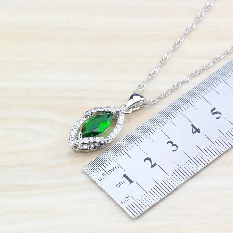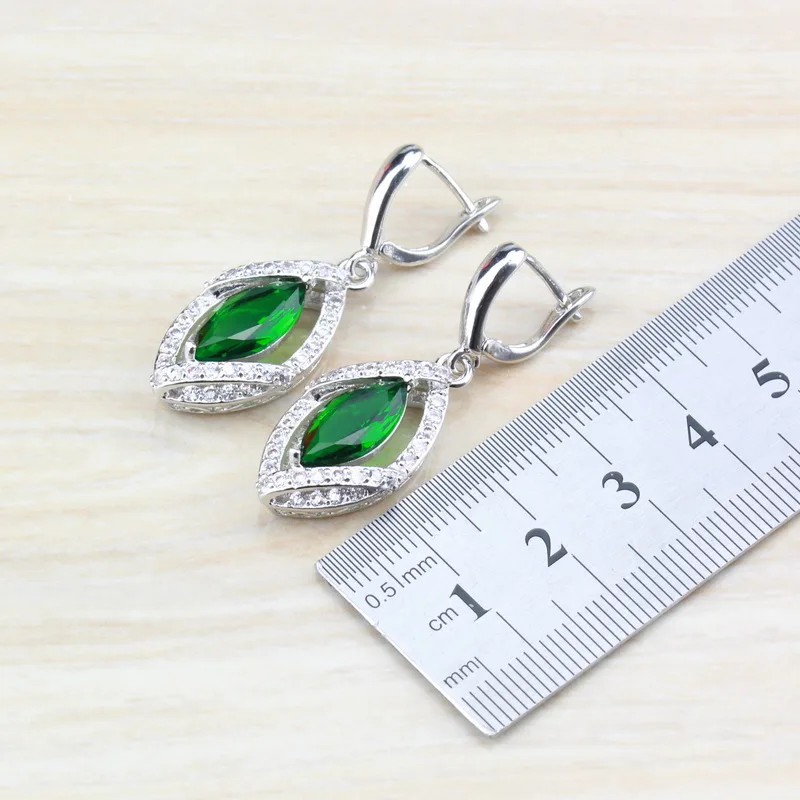 Buy 925 Sterling Silver With Natural Green Stone CZ Jewelry Sets For Women Costume Dangle Earrings/Neck