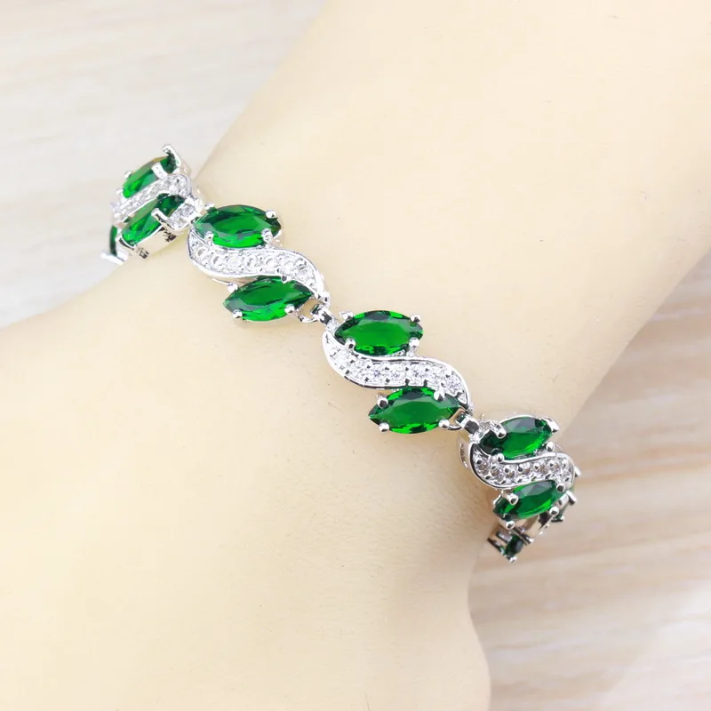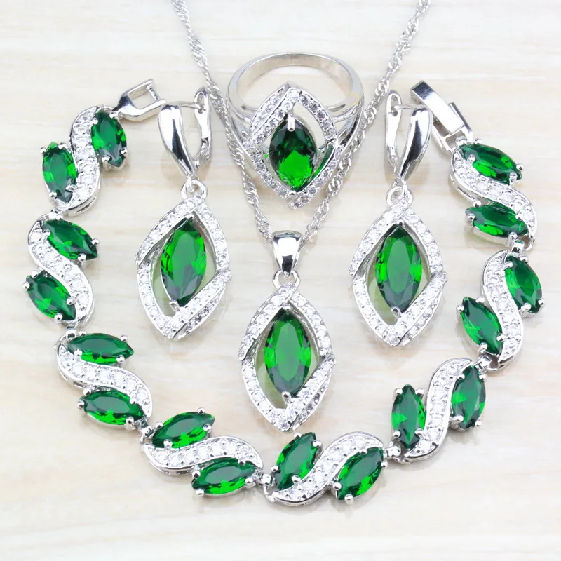 Promo 925 Sterling Silver With Natural Green Stone CZ Jewelry Sets For Women Costume Dangle Earrings/Neck
