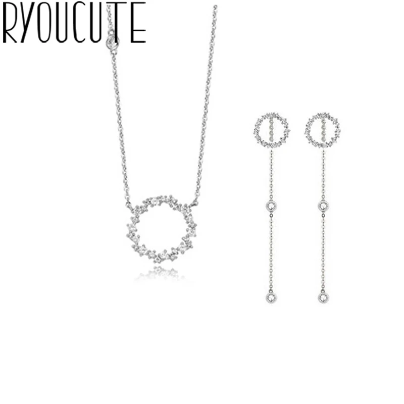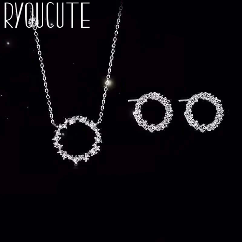 Best Fashion Bridal Jewelry Sets 925 Sterling Silver Rhinestone Circle Necklaces Earring For Women Party