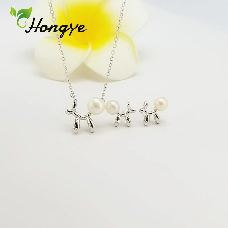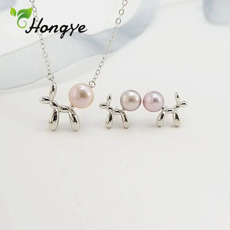 Best Hongye Natural Pearl Set Silver 925 Pendant Necklaces for Women Lovely 2 Colors Costume Jewelry Set