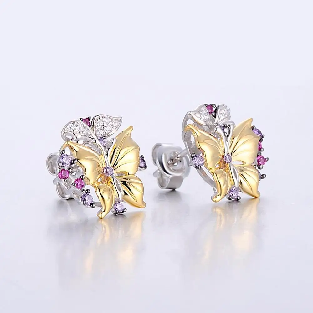 Best New Wedding Exquisite Jewelry Set Two Tone Gold Cubic Zircon Butterfly Pendant Choker Chain Necklac