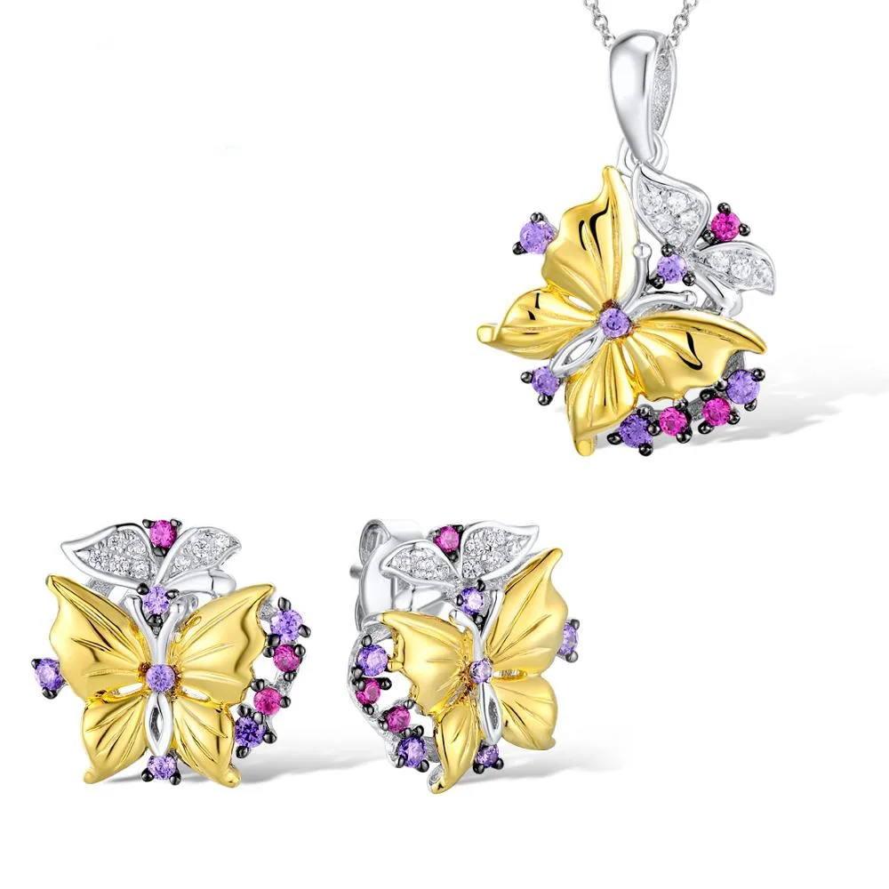 Promo New Wedding Exquisite Jewelry Set Two Tone Gold Cubic Zircon Butterfly Pendant Choker Chain Necklac